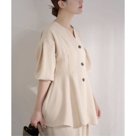 メリハリのあるペプラムデザインが華やかさを添え、ブラウス以上・ジャケット未満のきちんと感と軽やかなカジュアルさを両立しています。