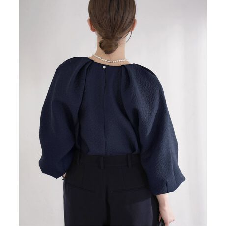 ほどよいハリのある素材が立体的なフォルムをつくり、首元のダブルタックがより華やかでエレガントな印象を演出します。
