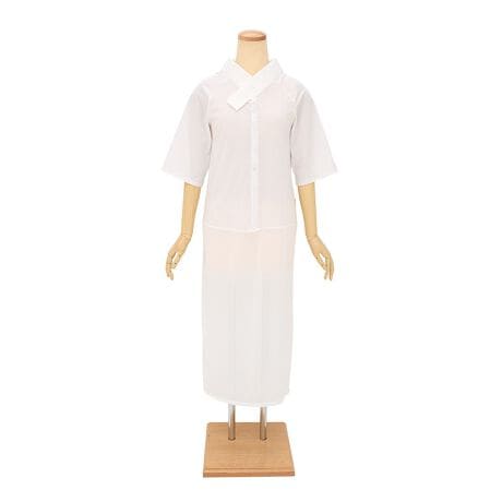 吸湿性、着心地共に優れた綿(コットン)100%の素材です。ヘアセット後でも着用しやすい前開き(スナップボタン)仕様です。