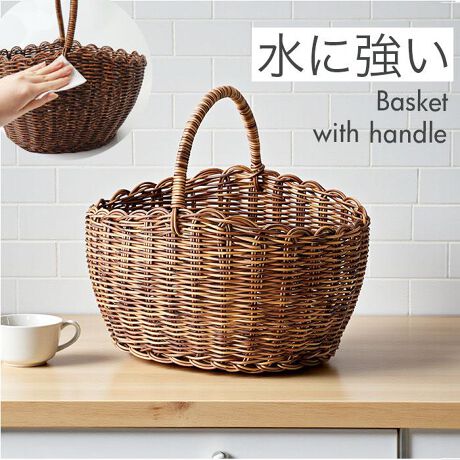 かご 持ち手付き 通販 かごバスケット バスケット 収納かご カゴ 籠 収納バスケット 収納ボックス 小物入れ 収納 ピクニックバスケット お手入れ簡単 持ち手つき 持ち手 ハンドル付き ワンハンドル 軽い 軽量 水濡れに強い 収納用品 ピクニック