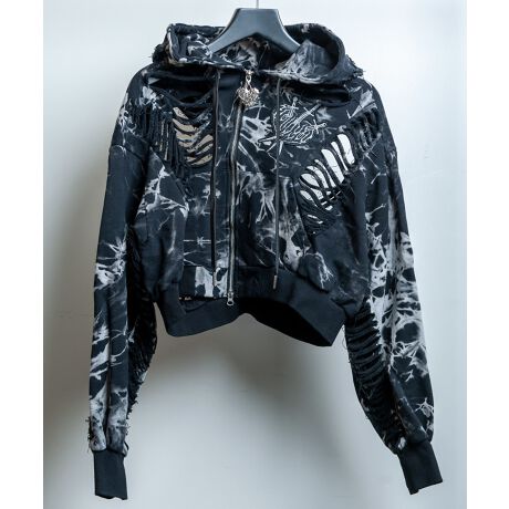 BACKSTAGEPASS(バックステージパス)のDESTROY HOODIE-VEIN-S(デストロイフーディー ヴェイン-エス) スケルトンダメージ ジップアップ クラッシュパーカー です。