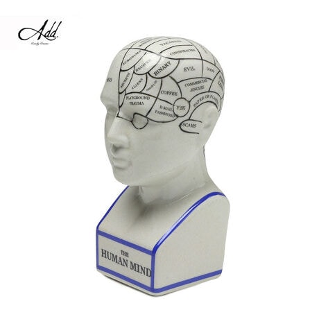 [型番:gfc-ad-0042]部屋においてあるとびっくりしてしまうようなフェイスオブジェ。インテリアを置きたいけれど、普通じゃつまらない。そんな人にとっておきの商品です。頭に書かれた言葉は、私たちが日々考えていることを思い起こさせるようで、ついつい読み込んでしまいます。