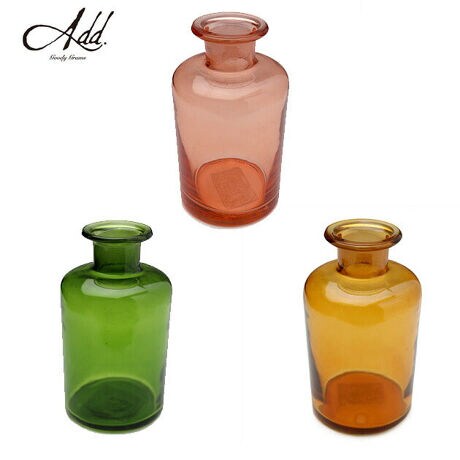 [型番:gfc-ad-0058]医療用のような瓶の形をしたフラワーベース。可愛らしい3色の色目がテーブルの上を彩ってくれます。