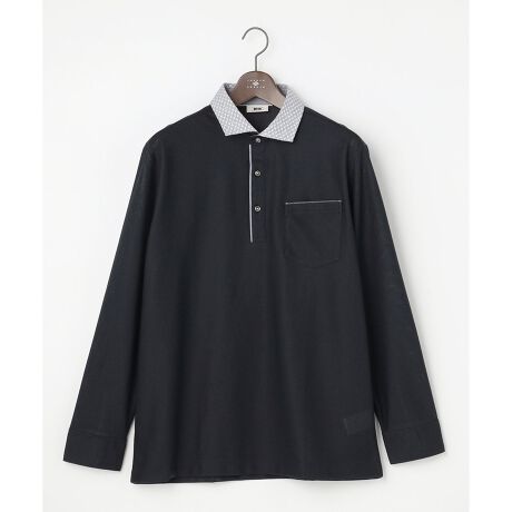 アブードオリジナルシャツ素材とのコンビネーションが特徴的なポロシャツです。衿とカフス裏には1月展開のHS0112・0117のシャツ地を使用し、さりげないアクセントを加えています。一枚で着ても上品に決まり、ビジネスシーンからカジュアルまで幅広く対応します。
