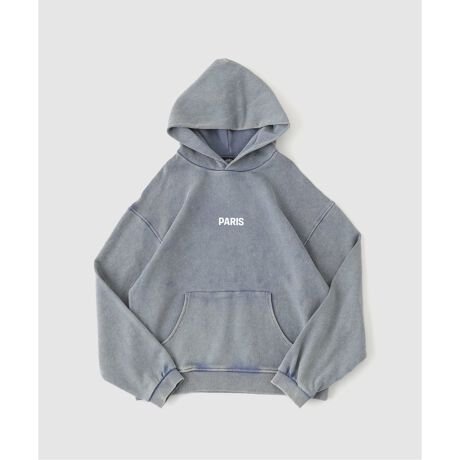 パッと見は、どこにでもあるカレッジ風のフーディ。 でも、よく見ると絶妙に色が抜けたような、何年も着古したヴィンテージのスウェットみたいな質感。