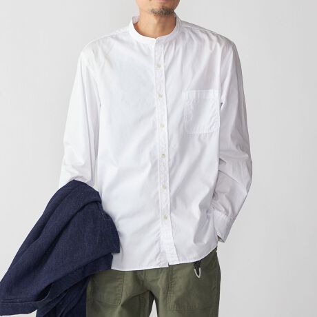 春夏の始まりを感じさせる爽やかなバンドカラーシャツ