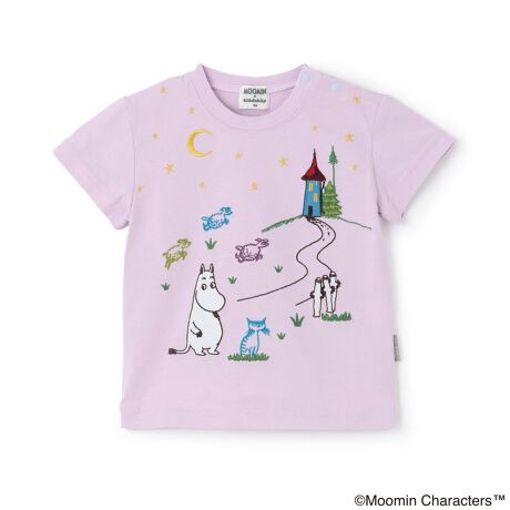 ムーミン谷の月夜をイメージした魅力的な半袖Tシャツです。ムーミントロールと友人たちが繊細に刺しゅうされています。空を見上げるソフスのバックプリントも可愛いポイント。やわらかな綿100%素材を使用しており、快適な着心地です。両側にポケットつき。