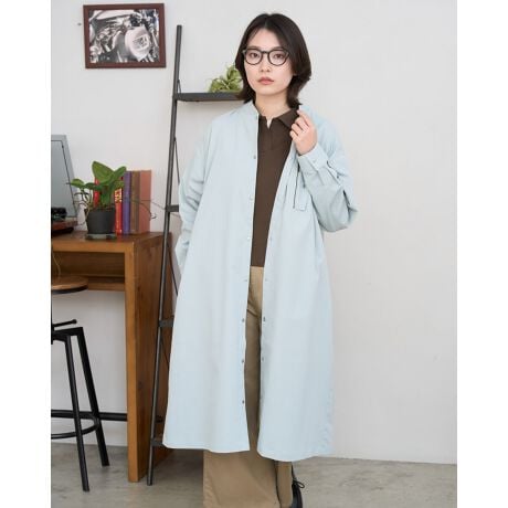 [型番:467U2102]程よくハリのある素材を使用しサラッと羽織れる1枚仕立てのコートです。襟部分はRIBを採用してカジュアルさをプラスしました。柔らかなカラーの2色展開です。