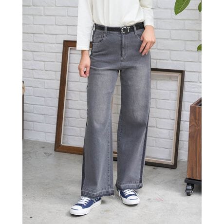 少し厚みのあるデニムを使用した股上深めのセミワイドシルエットパンツです。