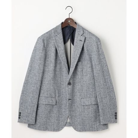 柄感を活かしたシンプルな2つボタンのテーラード型ジャケットです。背抜き仕様で軽やかに羽織ることができ、胸ポケットには袋布を引っ張り出すとポケットチーフになる「ギミックチーフ」を搭載。オリジナルプリント裏地と連動したカラークロス(地衿)がさりげないデザインポイントになっています。同素材のパンツと合わせて、セットアップコーディネートもお楽しみいただけます。