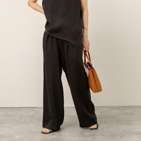 ・上品な光沢感が魅力のキュプラサテン素材のワイドパンツ