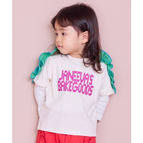 チェックフリルで顔まわりぱっと華やぐ。ロゴプリントで甘すぎない主役T♪
