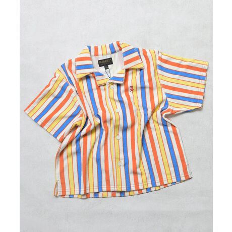 カラフルなマルチストライプが目を引く半袖シャツ。