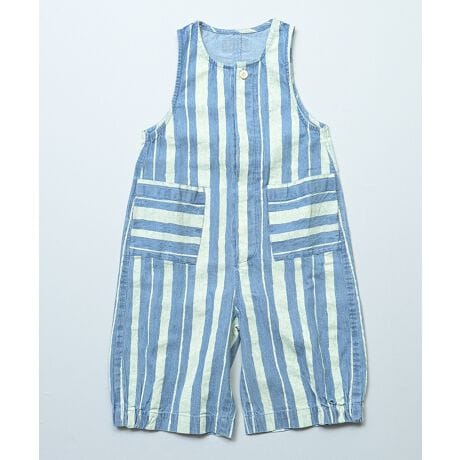 ストライプ柄のデニムが目を引く、ルーズシルエットのサロペットです。