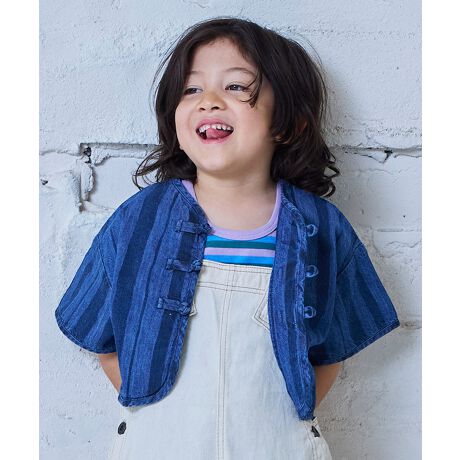デニム素材のチャイナシャツ