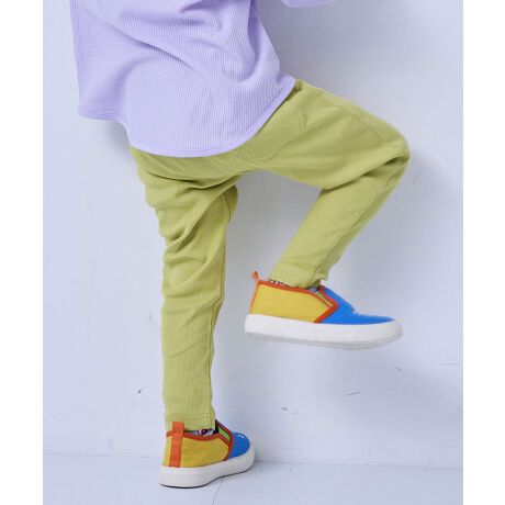 縦ラインを強調するリブ素材で脚まわりがきれいに見えます。