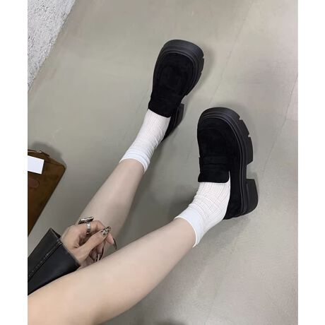丸みのある厚底ローファー。トレンドの形で、ボリュームのある厚底。厚底なので美脚効果もあり、安定感のある歩きやすいのが特徴。