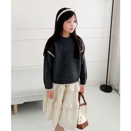 【aimoha-KIDS-】キッズ ふんわりモヘアタッチ配色ニットプルオーバー