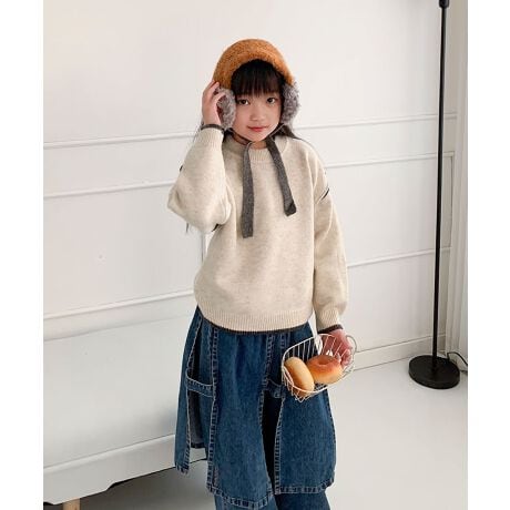 【aimoha-KIDS-】キッズ ふんわりモヘアタッチ配色ニットプルオーバー