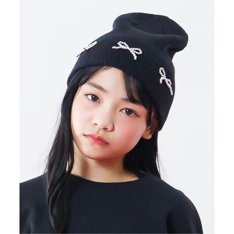 [型番:G168016]algy(アルジー)の帽子「メタルりぼんニット帽」。コーデにプラスワンするだけでトレンドスタイルに◎【 algy ーアルジー ー 】『おしゃれを楽しみたいティーンズのリアルクローズ』着たい 欲しい トレンド・・・全部そろう小中学生向けブランドです。#ALGY【サイズ情報】F:丈22 巾20