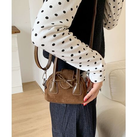 コロンとした丸みシルエットにフロントのリボンデザインを効かせ、甘さとカジュアルさのある使い勝手の良い一品です。
