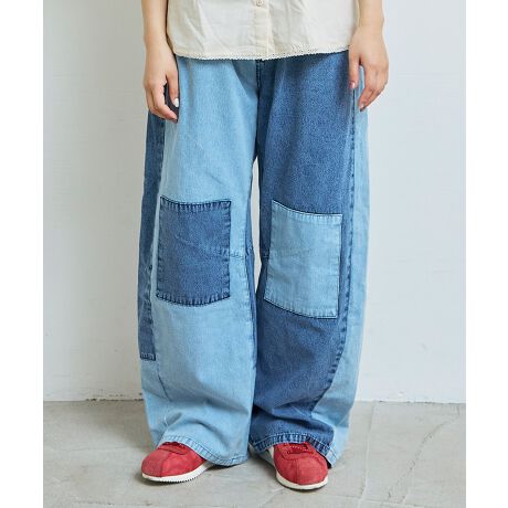 濃淡の違うデニムを切り替えたパッチワークデザイン。