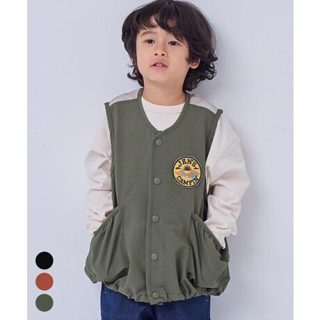 フロントのワッペンが目を引く、遊び心たっぷりのベスト。