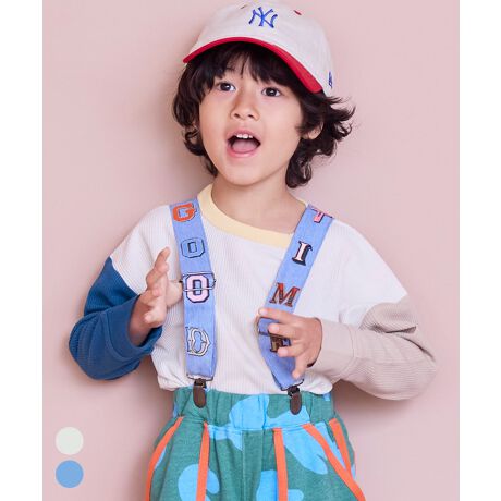 配色ベルトにロゴ刺繍をのせた、存在感たっぷりのサスペンダーです。