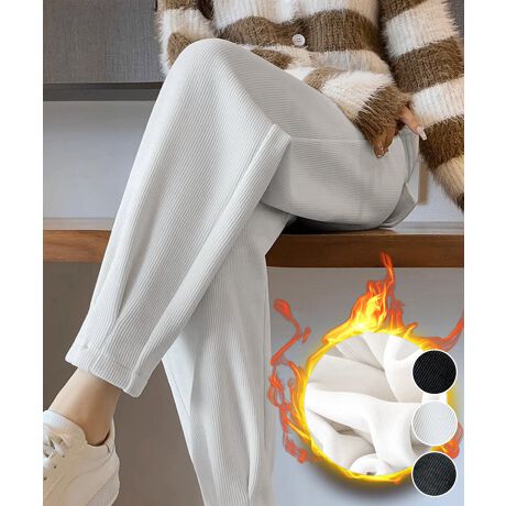秋冬に活躍する、裏起毛仕様のレディースコーデュロイパンツ。