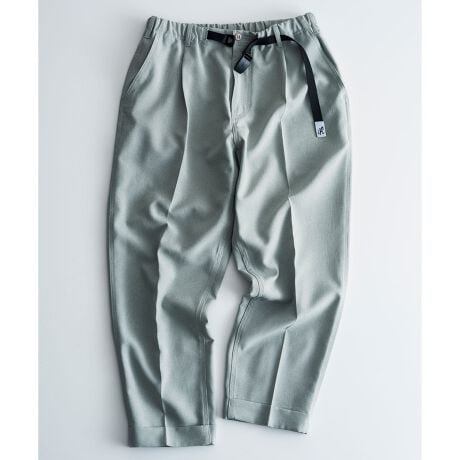 テーパードの効いたワイドシルエットにクロップド丈に、裾はダブル仕様に。