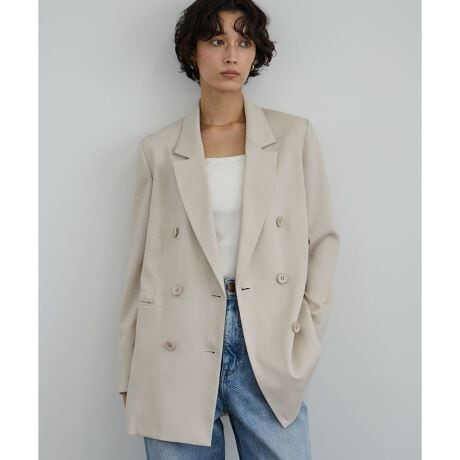 長いシーズンに対応できる素材を使用したダブルブレストのテーラードジャケット。