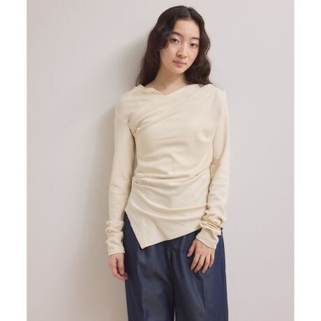 肩タックと脇タックによるドレープで女性らしさを引き立てたカットソー。