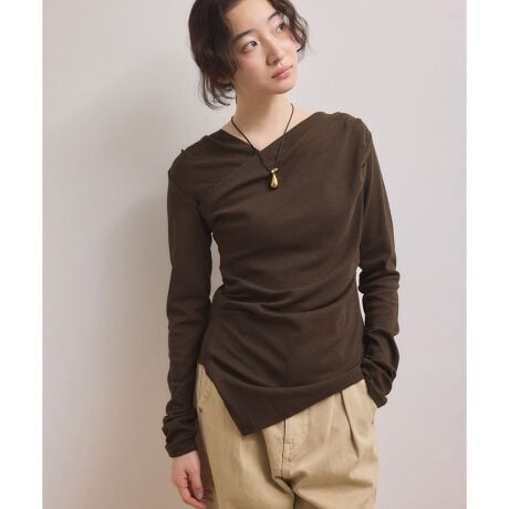 肩タックと脇タックによるドレープで女性らしさを引き立てたカットソー。