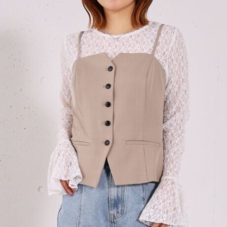 ・フロントボタンがアクセントになった、きれいめビスチェデザイン