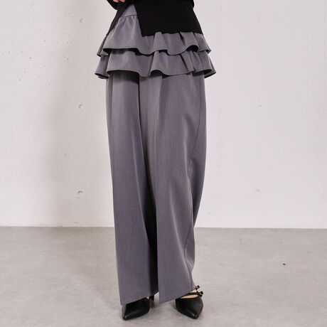 ・レイヤードスカートがセットになったデザインスラックス