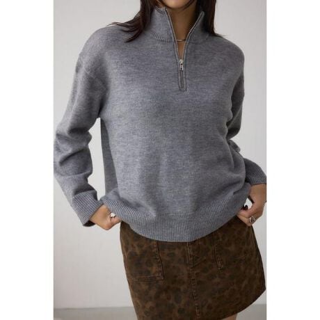 ■アソートカラーハーフジップニットトップス■ポイントハーフジップデザインが目をひく、抜け感のあるニットプルオーバー。■ディテール程よい厚みの糸で編み立て、ふっくらとした風合いと快適な着心地を両立しています。ジップを開けて抜け感のある襟元を演出したり、閉じてハイネックとしても着用可能です。ゆったりとしたドロップショルダーと前後差のある裾ラインが、こなれ感のある印象をプラスします。■スタイリングデニムやワイドパンツを合わせた、カジュアルなコーディネートにぴったりです。襟元からTシャツを覗かせて、レイヤードを楽しむスタイリングもおすすめ。スラックスを合わせてモードな雰囲気にまとめるのも◎。ミニボトムやロングスカートで女性らしく着崩すと、バランスの取れた抜け感のある着こなしに仕上がります。■生地ストレッチ性のあるポリエステル糸に、膨らみのある糸を組み合わせて編み立てています。透け感:なし裏 地:なし伸縮性:あり光沢感:なし[注意事項]※画像の商品はサンプルです。実際の商品と仕様、加工が若干異なる場合があります。※画像の商品は光の照射や角度、お使いのモニター環境により、実物と色味が異なる場合がございます。※着用、お取り扱いの際は、アテンションタグをご確認ください。