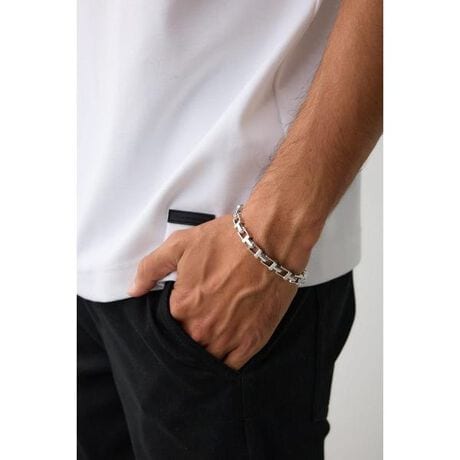 ■スクエアブロックチェーンブレスレット■ポイントお洒落なブロックチェーンのブレスレット。■ディテール日常使いしやすいスクエア型のシンプルチェーン。程よく輝き、あらゆる世代にぴったりのシンプルデザイン。個性が光るチェーンデザインはコーディネートのアクセントにも。お手元を華奢に魅せてくれる、存在感のある太めのシルエット。重ね付けにも最適、どんなコーディネートにも合わせられる上品さ。■スタイリング特にカジュアルなコーディネートやビジネスカジュアルなスタイルとの相性が良く、日常使いだけでなく、特別な日のおしゃれにも適しています。また、ブレスレットは容易に着脱できるように設計されており、快適に装着できます。このシンプルさとデザイン性を両立させており、ギフトとしても喜ばれるアイテムです。自分用としてはもちろん、贈り物にも適しています。■素材金属アクセサリーの場合、消毒液に触れたり、皮脂および汚れの蓄積により、変色や変質する場合がございます。定期的にふき取りのメンテナンスをお願いします。消毒液が製品に直接かかる事が無いようご注意下さい。■251IAC56-1861のリピート商品です。[注意事項]※画像の商品はサンプルです。実際の商品と仕様、加工が若干異なる場合があります。※画像の商品は光の照射や角度、お使いのモニター環境により、実物と色味が異なる場合がございます。※着用、お取り扱いの際は、アテンションタグをご確認ください。