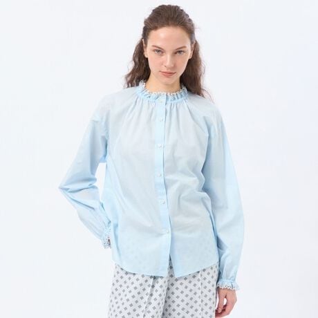 一枚着でも華やかな印象のレースコンビブラウス。襟元から覗くレースがコーディネートのポイントになるレイヤードアイテムとして大活躍の一着です。