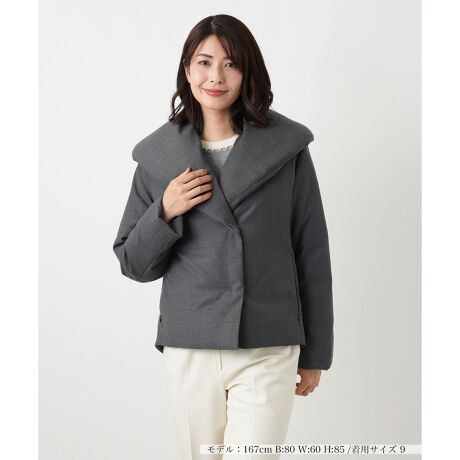 存在感のあるビッグカラーが、顔周りをドラマチックに演出する大人のためのダウンコート。ショールを纏ったようなエレガントな襟元は、小顔見えも期待できる計算されたデザイン。あえてフードを排したミニマルなフォルムが、洗練された都会的なムードを醸し出します。また、ダウン特有の光沢感を抑えたマットで気品ある表情に仕上げました。日常からエレガントなシーンまで、冬の装いをクラスアップさせる一着です。