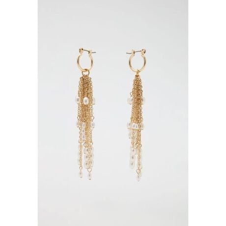【F/PEARL FRINGE EARRINGS/ フェイクパールイヤリング】■ポイント繊細なチェーンのフリンジに小粒のフェイクパールをあしらったピアス。動くたびに揺れるデザインで、耳元に華やかなアクセントをプラスします。■ディテール複数のチェーンを束ねてフリンジ風に仕上げ、縦ラインを強調。チェーンの先にフェイクパールをあしらい、上品さと華やぎを演出します。軽やかな着け心地で、長時間の使用も快適です。シルバーとゴールドの2色展開で、スタイルに合わせて選べます。■スタイリングシンプルなTシャツやシャツに合わせて、耳元を主役にしたスタイリングに。ニットやワンピースと合わせても女性らしさを引き立てる華やかなアクセントになります。パーティーや特別なシーンにはもちろん、デイリーコーデのワンポイントにおすすめ。アップヘアと合わせれば、揺れるデザインがより一層映えます。■商品のお気に入り登録お気に入りアイテムの再入荷・在庫1点などの通知を受け取ることができます。■ブランドのお気に入り登録新作アイテムの入荷や人気アイテムの再入荷、おすすめトピックスなど、いち早くブランドの情報を受け取ることができます。[注意事項]※画像の商品はサンプルです。実際の商品と仕様、加工が若干異なる場合があります。※画像の商品は光の照射や角度、お使いのモニター環境により、実物と色味が異なる場合がございます。※着用、お取り扱いの際は、アテンションタグをご確認ください。