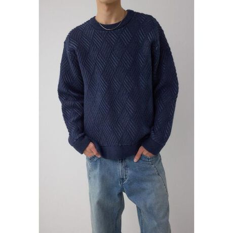 ■ダイヤ柄ニットトップス■ポイント立体感のあるブークレー編地でダイヤ柄を表現した、存在感のあるニットトップス。幾何学的なパターンがAZUL MENSらしいモードな印象を与えます。■ディテール細番手の糸を掛け合わせることで、凹凸のある編地に微配色が生まれ、幾何学模様が上品に映えます。2サイズでベーシックなシルエットです。厚みがあり暖かく、BLK・NVY・GRYの落ち着いた色合いで秋冬の主役に。■スタイリングデニムやカーゴパンツ、スニーカーと合わせればカジュアルに。スウェード調のコートやウールスラックスと合わせると大人っぽいスタイルにも◎シャツの襟やカットソーの裾を覗かせて、柄を引き立てる着こなしもおすすめです。■生地マシンウォッシャブル商品。糸に凹凸のあるポリエステルブークレ編地を適正ゲージにはめ込み、しっかりとした厚みを出しています。※お取り扱い上のご注意ピリングなどが発生した場合は、はさみなどできれいにカットしてください。透け感:なし裏 地:なし伸縮性:なし光沢感:なし[注意事項]※画像の商品はサンプルです。実際の商品と仕様、加工が若干異なる場合があります。※画像の商品は光の照射や角度、お使いのモニター環境により、実物と色味が異なる場合がございます。※着用、お取り扱いの際は、アテンションタグをご確認ください。
