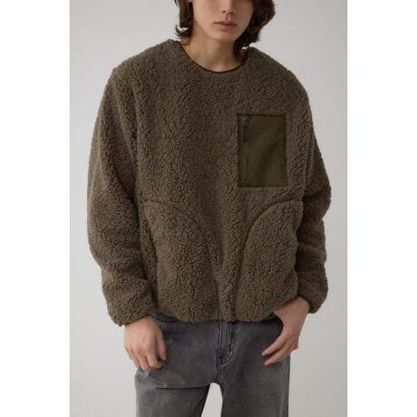 ■シープボア防風トップス■ポイントシープボア×フリースのボンディングで、見た目に暖かく保温性が高いデザイン。シンプルなトップスフォルムでアウター感覚でも使えるユーティリティ性をもっております。■ディテール2サイズでベーシックなシルエットですが、もこもこ感があるためサイズ感はややゆったりめに感じる可能性があります。■スタイリングカジュアル:デニムやワークパンツと合わせてアウトドア/タウンユースに最適です。レイヤード:薄手のインナーやシャツと重ねて、アウター代わりに着用可能です。アクセント:ミリタリートーンのKHAはブーツ合わせ、BLKはモノトーンで都会的に、C.GRYは柔らかい印象でニットやマフラーと好相性です。■生地もこもこ感で見た目にも暖かさのあるボアとフリースをボンディングしています。生地の間に極薄の防風シートを挟み込んでいますので防風性が高く、外でも暖かく着用していただけます。透け感:なし裏 地:なし伸縮性:なし光沢感:なし[注意事項]※画像の商品はサンプルです。実際の商品と仕様、加工が若干異なる場合があります。※画像の商品は光の照射や角度、お使いのモニター環境により、実物と色味が異なる場合がございます。※着用、お取り扱いの際は、アテンションタグをご確認ください。