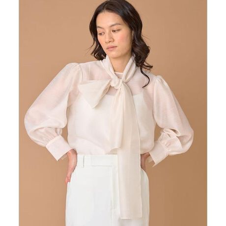 ■デザインセレモニーや通勤、お食事会などに重宝する華やかなブラウスです。スラブ糸を使った新鮮で華やかな透け感のあるシャンタン素材使用しています。たっぷりとしたタイは取り外しできる2WAYタイプ。リボンや片結び、ネクタイ風など様々なアレンジ可能です。裾はたっぷりとしていて、パンツの上に着るだけで様になります。■素材ハリとコシがあり微光沢で上品なボイルシャンタン。スラブ糸を使用した透け感を持った薄手の素材感です。・水洗い可・ボウタイ取り外し可・後ろボタンあり■サンプル撮影商品画像の商品はサンプルです。実際の商品とはサイズや色味、素材、デザイン等の仕様が若干変更になる場合がございます。■カラーについては、可能な限り実際の商品に近いカラーで撮影をおこなっておりますが、照明の関係により実際の製品とは色味が違って見える場合があります。またパソコン・スマートフォンなどの環境により、若干製品と画像のカラーが異なる場合もございます。現物と画像のカラー差異については返品理由となりませんので、予めご了承ください。■サイズ表記はあくまで目安となります。