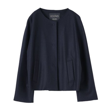 ミニマルな美しさと現代的なディテールが融合したノーカラージャケット。襟元や裾にあしらわれたカットオフ仕様。切りっぱなしの端をミシンで丁寧に叩くことで、コンサバになりすぎない、抜け感のあるモダンな表情に仕上げました。フロントはスマートな着脱を叶えるスナップボタンを採用。やや薄手で程よく伸縮性のある軽やかな素材感はカーディガン感覚でさらりと羽織ることができ、柔らかな光に映える洗練された大人の装いを演出します。