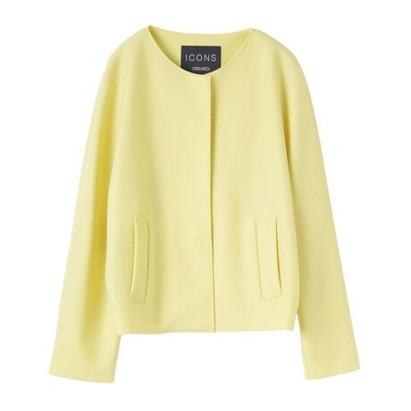 ミニマルな美しさと現代的なディテールが融合したノーカラージャケット。襟元や裾にあしらわれたカットオフ仕様。切りっぱなしの端をミシンで丁寧に叩くことで、コンサバになりすぎない、抜け感のあるモダンな表情に仕上げました。フロントはスマートな着脱を叶えるスナップボタンを採用。やや薄手で程よく伸縮性のある軽やかな素材感はカーディガン感覚でさらりと羽織ることができ、柔らかな光に映える洗練された大人の装いを演出します。