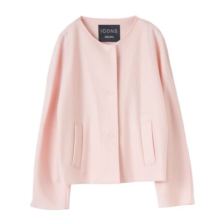ミニマルな美しさと現代的なディテールが融合したノーカラージャケット。襟元や裾にあしらわれたカットオフ仕様。切りっぱなしの端をミシンで丁寧に叩くことで、コンサバになりすぎない、抜け感のあるモダンな表情に仕上げました。フロントはスマートな着脱を叶えるスナップボタンを採用。やや薄手で程よく伸縮性のある軽やかな素材感はカーディガン感覚でさらりと羽織ることができ、柔らかな光に映える洗練された大人の装いを演出します。
