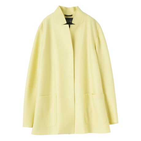 ミニマルなデザインと、春らしい軽やかさが共演する比翼風ジャケット。美しい色合いが目を惹く一着は、襟元や裾の端をカットオフにし、ミシンで叩いたディテールが最大の特徴。コンサバになりすぎない大人のエフォートレスな表情を演出します。フロントにはスマートな着脱を叶えるスナップボタンを採用し、閉じた際もすっきりと洗練された比翼風のルックスに。やや薄手で伸縮性も程よくある素材感はカーディガン感覚でさらりと羽織ることができ、大きなパッチポケットが実用的なアクセントを添えます。
