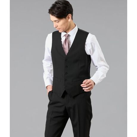 真夏と真冬を除く約10ヶ月間のロングシーズン着用することをコンセプトに開発された、NEWYORKER MENの人気商品「10month」シリーズから、フォーマルから普段使いまで幅広く使えるセットアップ対応の5ボタン襟無しオッドベストが登場。ビジネスだけでなく冠婚葬祭やリクルートなど様々なシーンに対応する1着です。濃染のブラックカラーで、ビジネスだけでなく冠婚葬祭やリクルートなど様々なシーンに対応します。同色・同素材のセットアップスーツと合わせた3ピーススタイルがおすすめです。