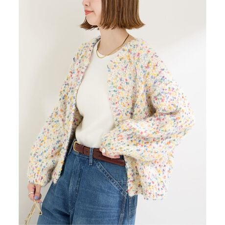 ポコポコとした見え感にフェザーのフワフワ感とゆるっとした雰囲気が可愛いく、カラフルでキャッチーな一枚着映えのタイプです。