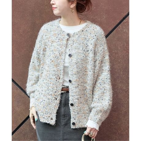 ポコポコとした見え感にフェザーのフワフワ感とゆるっとした雰囲気が可愛いく、カラフルでキャッチーな一枚着映えのタイプです。